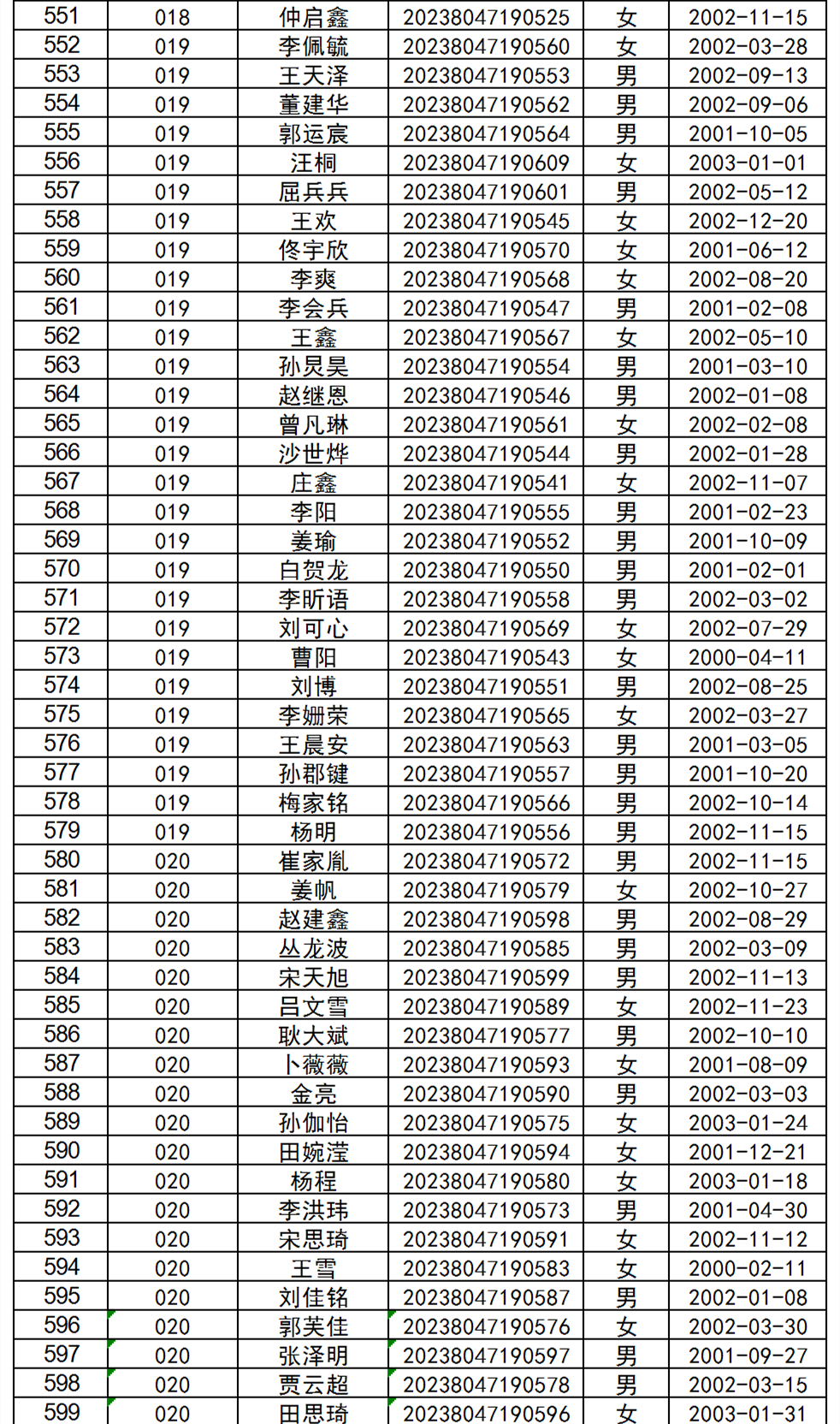 2020年单招考核合格录取名单
