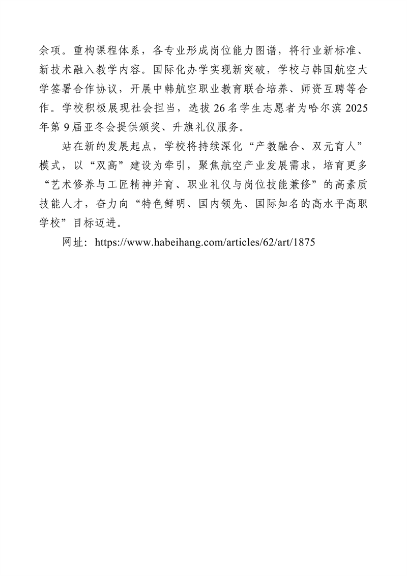 哈尔滨北方航空职业技术学院高等职业教育质量报告(2025年度)