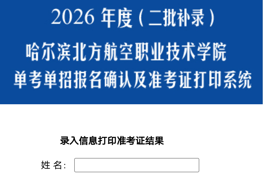 哈尔滨北方航空职业技术学院2026年高职单招考试(二批补录)成绩及录取结果查询